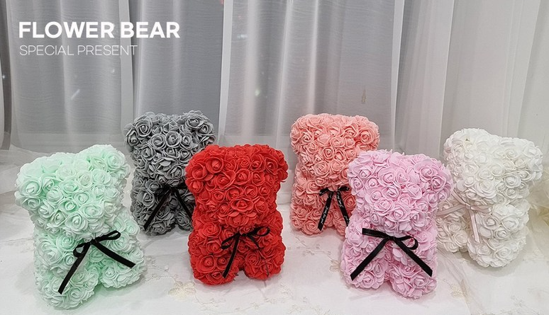 “진짜 장미로 만든 곰돌이, 귀엽고 로맨틱한 감성 선물”